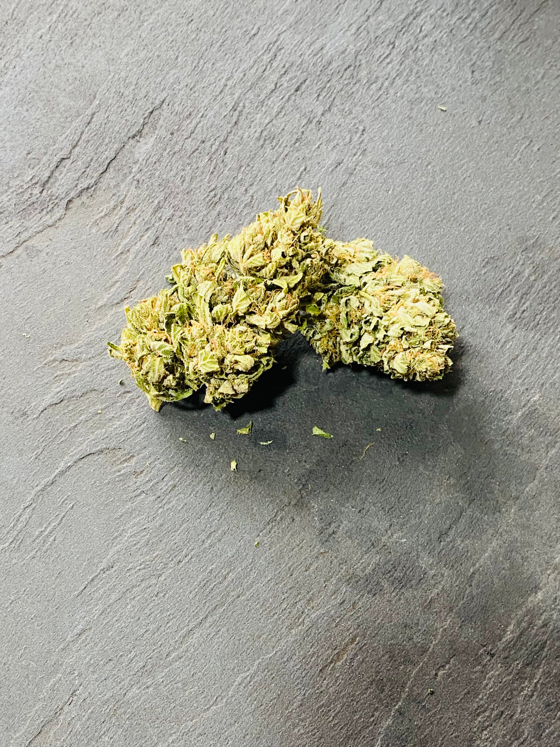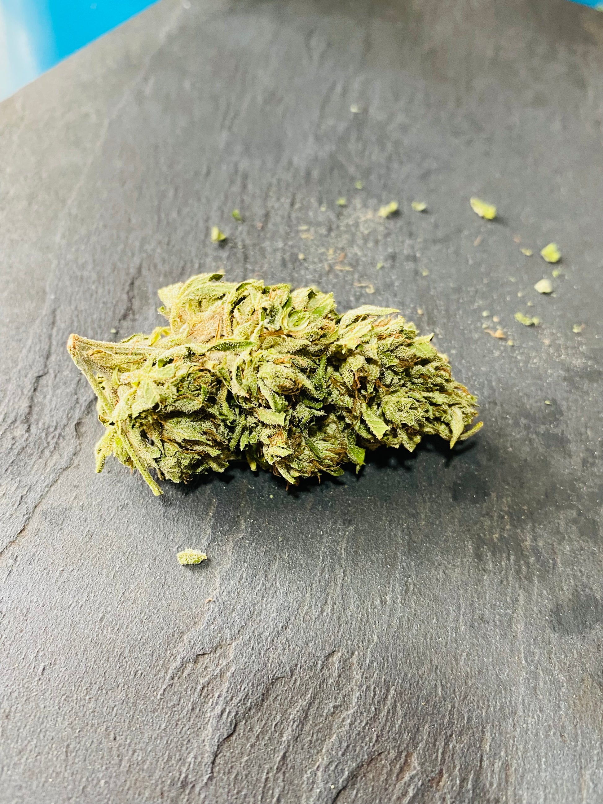 • Couleur : plutôt claire dans les tons verts, avec des trichomes donnent un éclat blanchâtre ou “gelé” selon la lumière et la densité des cristaux.