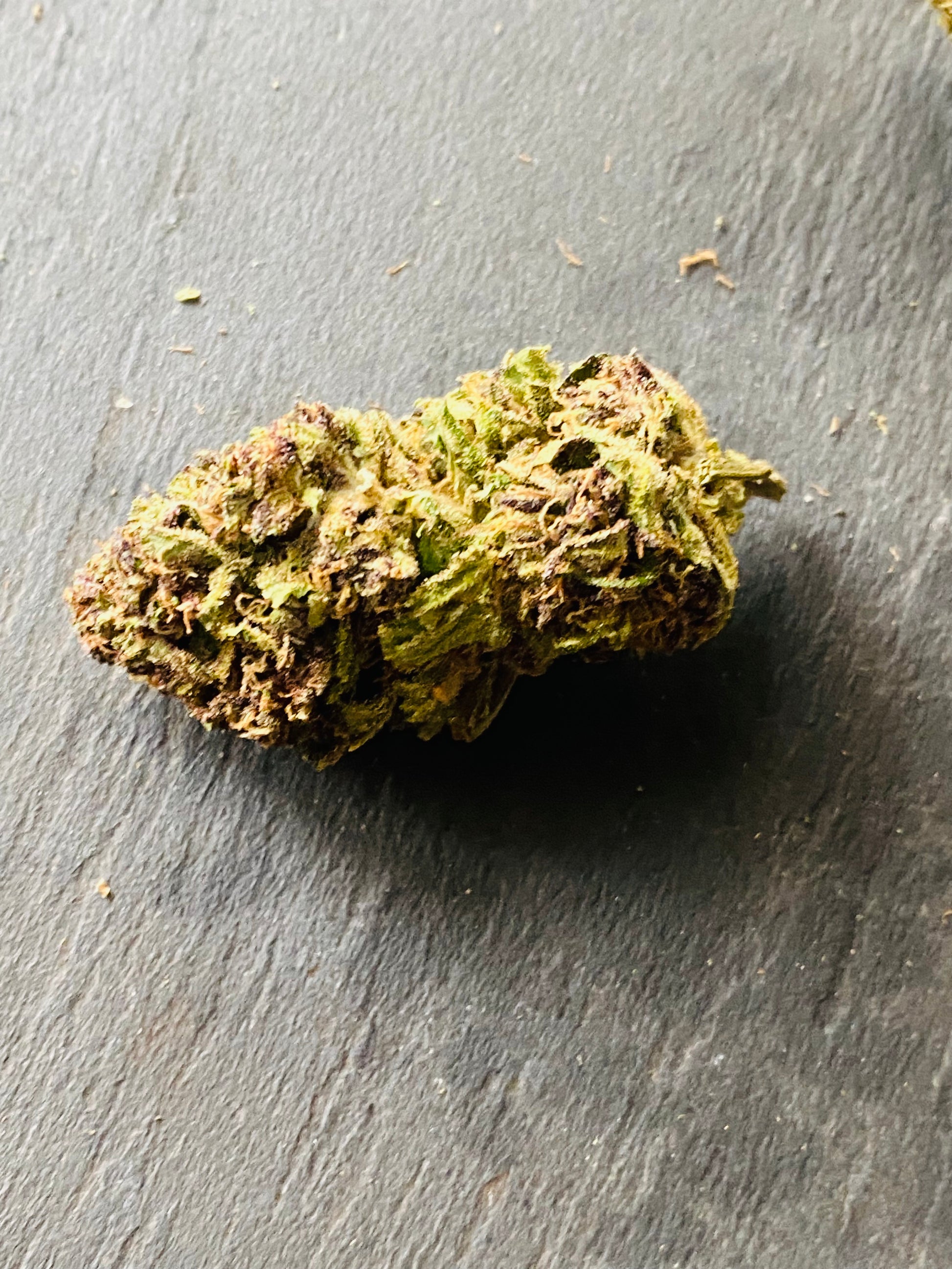 . Les fleurs de JFK sont compactes arborant des couleurs allant du vert au violet selon les phénotypes des plantes.